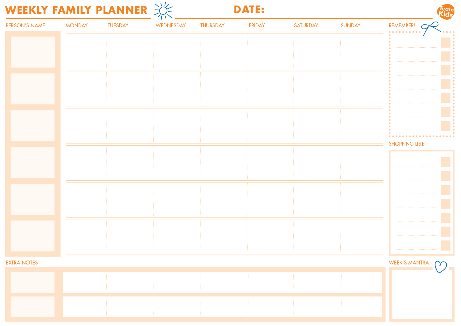Put up a family calendar or a fun checklist. Children love seeing what is happening each day, and it makes them feel proud when they tick things off. To make things even easier, head into your TeamKids service and pick up a FREE weekly whiteboard planner or download a version online HERE. Having a planner can be a real game changer when life gets busy juggling extracurricular activities, organising dinners, and making appointments, trust us- this will come in handy! - Add Fun into the Day